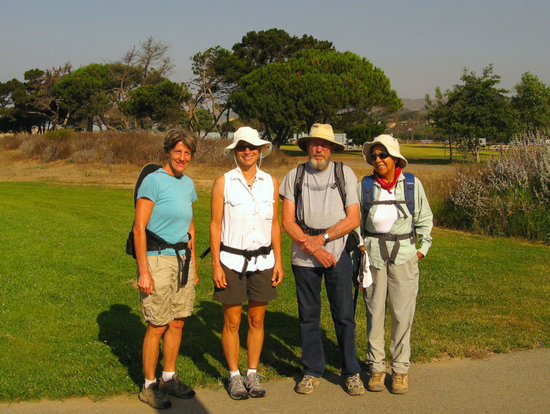 Five Rancho Simi Trailblazers decided to escape the blazing August temperatures and the nearby forest fires in the Angeles National Forest by driving to the city of Ventura and hiking/walking near the beach. We headed north on Hwy 101 to the Seaward Avenue exit in Ventura, turned right (west) on Harbor Boulevard, drove 0.4 mile to San Pedro Street and turned left onto it, then drove 0.2 mile to the San Buenaventura State Beach parking lot entrance and turned right; there was a $10.00 day-use parking fee. We headed from the parking lot toward the ocean, turned right on the paved walking/biking path, and headed north toward the Ventura Pier (which is 1,700’ long). After passing the pier, we strolled past Promenade Park and then Seaside Park; many surfers were in evidence in the ocean and on the beach. There were many runners, bikers, and casual strollers in the area; the public was making good use of the parks and beaches. We passed the Ventura County Fairgrounds (on the inland side) and eventually reached the Ventura River Trail which heads north toward Ojai [its name changes to the Ojai Valley Trail at Foster Park]. We followed this trail to West Main Street where we turned left and crossed the Ventura River via a bridge. We soon passed the Seaside Wilderness Park and reached the Emma Wood State Beach. Feeling energetic and enjoying the cool ocean breeze, we continued walking northward as the path ran parallel to (and near) the beach, finally turning around after about 4.5 miles. As we retraced our steps, the day warmed up and the breeze vanished, but it was still 30 degrees cooler than Simi Valley. We enjoyed walking along the sandy (and somewhat rocky) beach next to the water for a while on the way back, but were happy to reach the parking lot and our air-conditioned car. We returned to Simi Valley (where it was over 100 degrees), having completed a 9.1-mile hike with virtually no elevation gain.