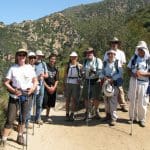 On an unseasonably warm winter day nine Trailblazers began an out-and-back hike in Santa Paula Canyon from the trailhead on Highway 33 a few miles northwest of Santa Paula, a quaint town located in the agricultural Santa Clara River Valley and referred to as the “Citrus Capital of the World” for its orange, lemon, and avocado groves. The initial portion of the hike involved skirting the campus of Thomas Aquinas College, the Ferndale Ranch, avocado groves, and an oil field with mountains looming in the distance. December’s rains lent a pleasing green hue to the vegetation. The winter floods of 2005 washed out much of the old road/trail along Santa Paula Creek, but there is still a discernable trail with many trail markers; in fact, we encountered a crew of volunteers working on trail improvements during the hike. We crossed the creek uneventfully several times, on some logs at one point and on small boulders at other points. Sycamore and alder trees provided intermittent shade. Eventually we began ascending the mountain on the east side of the creek. The trail (an old dirt road narrowed by erosion and plant growth) was pleasingly shaded and led us to Big Cone Campground which has several nice campsites nestled in a grove of big cone Douglas fir trees. Soon after passing the campground we descended into a ravine created by major erosion a few years ago and climbed up a fairly steep slope on the opposite side. The trail then continued a short distance before it descended again, this time to a tributary of Santa Paula Creek. From there we traveled a short but challenging distance downstream to a picturesque waterfall and punchbowl where we rested and enjoyed the scenery for a while. We resumed our hike on the main trail and climbed northward away from the tributary creek on the shady trail. Soon we were able to look down at the large pool below the waterfall and into the narrow gorge through which the creek flows before it becomes a waterfall. We then explored the nearby slick-rock slide area above the waterfall. The main trail – now named the Last Chance Trail – continues northward eventually connecting to other trails providing access to the wilderness areas to the north. However, on this day we went no further. As we returned to the trailhead, we spotted a young man (probably a college student) who had climbed a rope to a ledge above the pool below the waterfall. As we gazed in his direction, he gathered his courage and jumped from his perch into the pool. We continued on our return journey and eventually arrived at the trailhead, a bit tired but mentally refreshed.