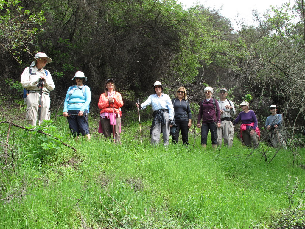 On a still cool Saturday morning, 15 cheerful hikers met on Westwood Street, and walked to the nearby Chivo Canyon Trailhead. We originally planned to hike to Matilija Falls, but since the NOAA/NWS was forecasting 90 degrees, just northwest of Ojai, we thought it wise to plan a local substitute hike.
