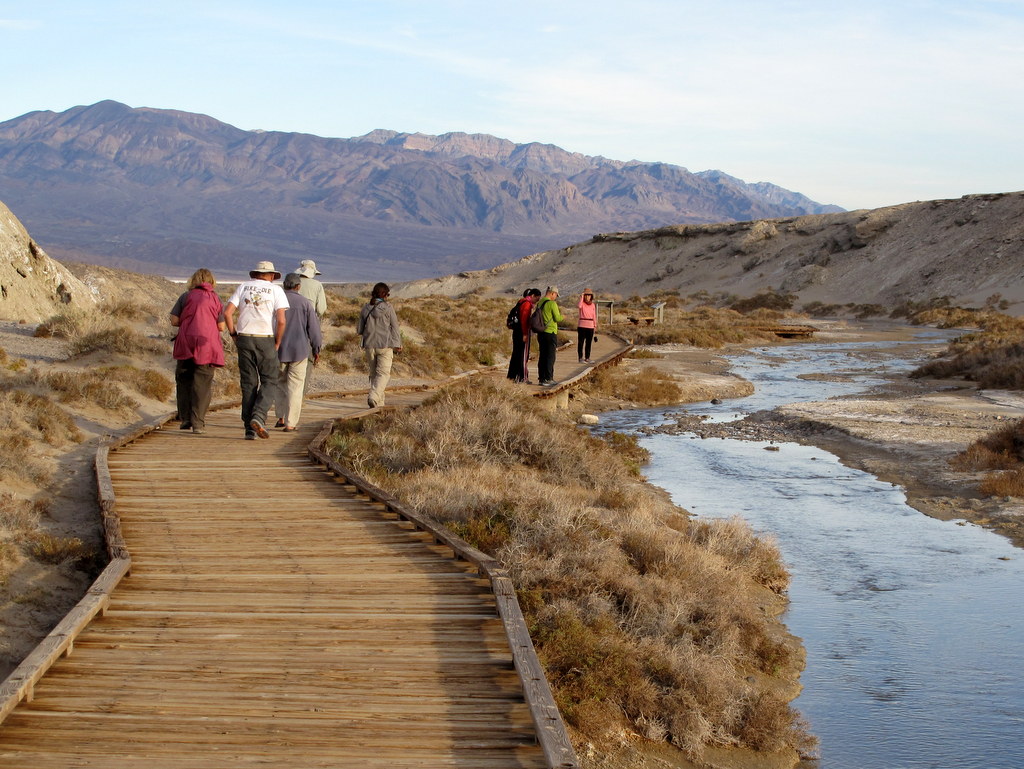 Next we headed back toward the campground, stopping along the way for a pleasant walkabout on the Salt Creek Trail, a boardwalk “trail” along the creek that allowed us to view the rare Salt Creek Pupfish, a very small species which is on the Endangered Species list. Our walkabout was 1 mile with about 10’ of elevation gain/loss. We then returned to the campground.