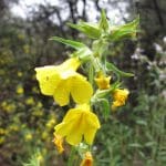 Our hike began along Trail #22 (shown on the RSRPD “Park Facilities Directory Map of Simi Valley and Oak Park), as it headed up Chivo Canyon. At 0.7 the mile mark, we turned left on Trail #23 and followed it through a side canyon as it climbed westward to an overlook that revealed a sweeping view of Tapo Canyon. Continuing downhill, we met Trail #24, and turned left heading back to Trail #22, taking us back to the trailhead. Despite the fact that Summer just began, there was still a good many wildflowers in bloom, including Heliotrope, Indian Pink, Datura, Bush Sunflower, Tree Tobacco, Indian Paintbrush, Bush Mallow, Cliff Aster, and Plummer’s Mariposa Lilly. All in all it was a short but enjoyable hike, covering about 4.5 miles round trip, and 600’ of elevation gain/loss.
