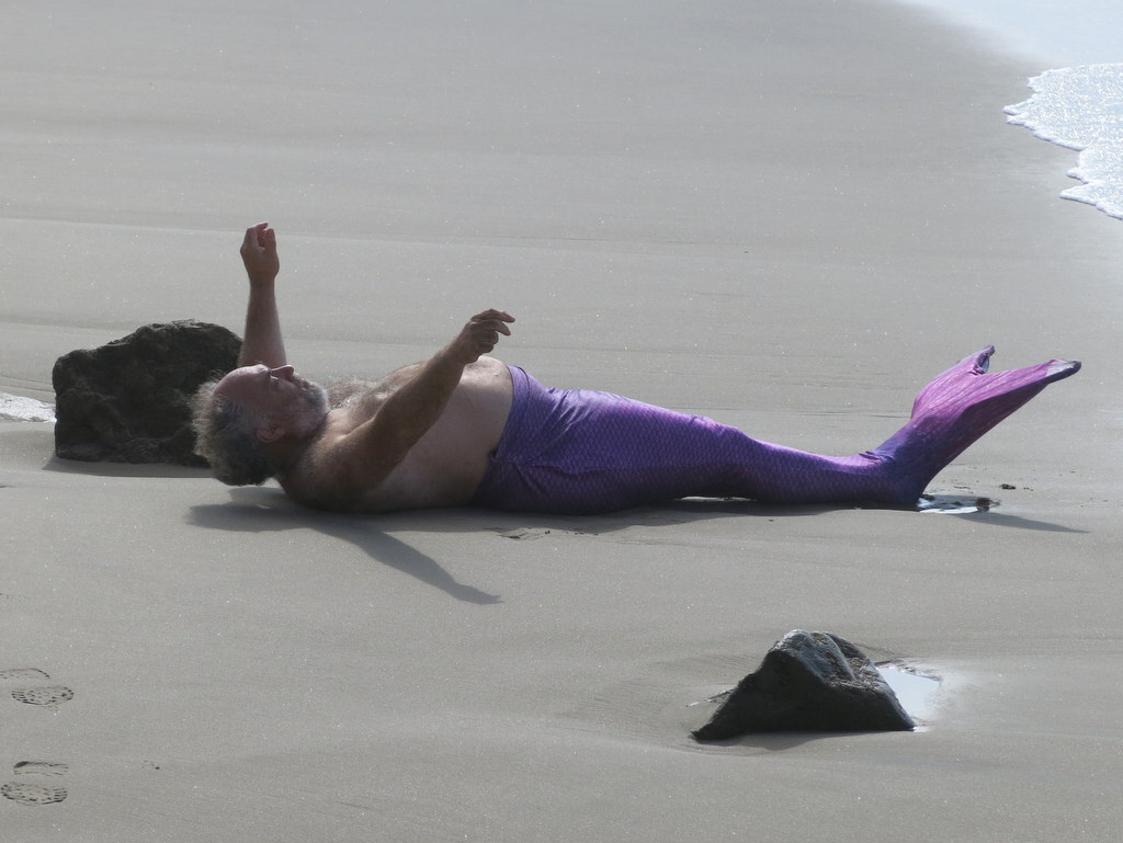 Once we “escaped” from the path of the triathlon, we decided to explore Thornhill Broome Beach State Park which is located along PCH between the giant sand dune and Mugu Rock. It was a pleasant morning as we strolled along the beach watching the waves and lots of seashore birds. The beach was surprisingly sparsely populated (with humans) to our delight. We eventually reached the western end of the beach near Mugu Rock and across the PCH from the entrance to La Jolla Canyon. After a leisurely rest/snack break during which our own “merman” made a short appearance, we then ambled back along the beach to our vehicles and headed back to Simi Valley via Camarillo having walked on sand for 2.4 miles with a “whopping” 35’ of elevation gain/loss (and having turned “lemons into lemonade”). NOTE: The original Westward Beach to Point Dume to Paradise Cove hike will be rescheduled in October.