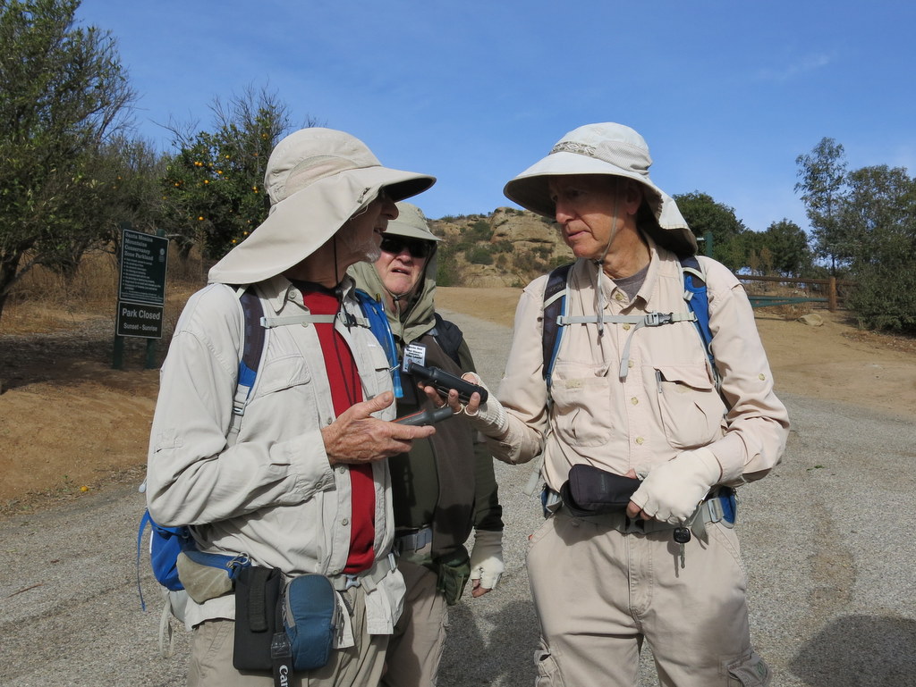 22 hikers met at the trailhead on Iverson Road just outside the gated southern entrance to Indian Springs Estates in Chatsworth on a cool, clear autumn morning. After following the easement through the upscale gated community, we reached the beginning of the unpaved Johnson Motorway (once a toll road).