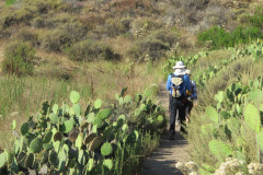 On a perfect sunny morning, three volunteers met at the western end of Washburn Street at the Mt. McCoy trailhead. The first thing we did was to widen the trail where it passed through its prickly pear cacti grove. As we made our way up the trail, using Shovels and pick mattocks, we removed buried stones that were tripping hazards. One volunteer did a little trail widening using a gas-powered hedge trimmer. Further up the trail, part of the trail needed shoring up to prevent side sloping. We trenched in a 2’x8’x10’ redwood plank and leveled the trail using stones and dirt. It was a good morning thanks to Paul Friedeborn, Mike Kuhn and Martin DeGoey.