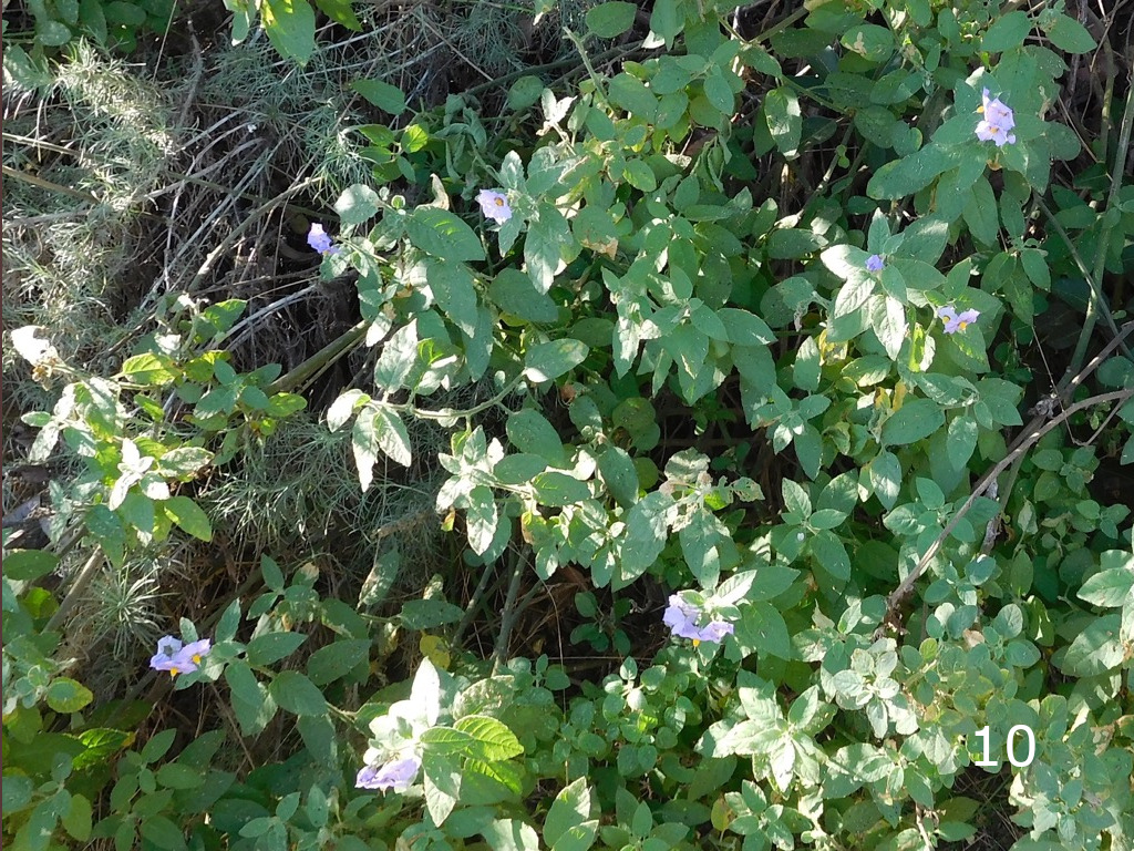On a sunny spring morning, six hikers met at 9:00 AM at the Las Llajas trailhead, located at 5715 Evening Sky Dr. Simi Valley, CA. The walk began downhill on a paved service road where we identified our first two flowers, California poppy (1) and a wild sweet pea (2). Once the pavement ended and the road leveled out we began seeing white sage (3), some narrow-leaved bedstraw (4), a lot of purple sage (5) and a blossoming castor bean (6). As we continued our walk, there was no shortage of wildflowers; bush sunflowers (7) and blossoming elderberry (8) were everywhere. In a slightly shadier area there were prickly lettuce (9), purple nightshade (10) and horehound (11). With friendly conversation we came upon a patch of Fremont cottonwood (12), where the seed fluffs were a fun topic. Two more hikes joined us as we continued on with a seemingly endless amount of wildflowers to identify. Other wildflowers photographed were; Indian paintbrush (13), Chinese houses (14), lupine (15), slender sunflower (16 & 17), yellow sweet clover (18), yellow mariposa lily (19 & 20), wild cucumber (21), golden yarrow (22), black sage (23), Santa Barbara locoweed (24), milk thistle (25), tamarisk saltcedar (26), sugar bush (27), hollyleaf cherry (28), black walnut (29 & 32), chaparral yucca (30), yerba santa (31). After walking about a 1.5 miles we viewed our last wildflower, sticky Phacelia (33) and headed back to our vehicles. It was a great morning, thanks to Mike Kuhn, RSTB and Simi Valley Recreation and Park District.