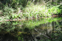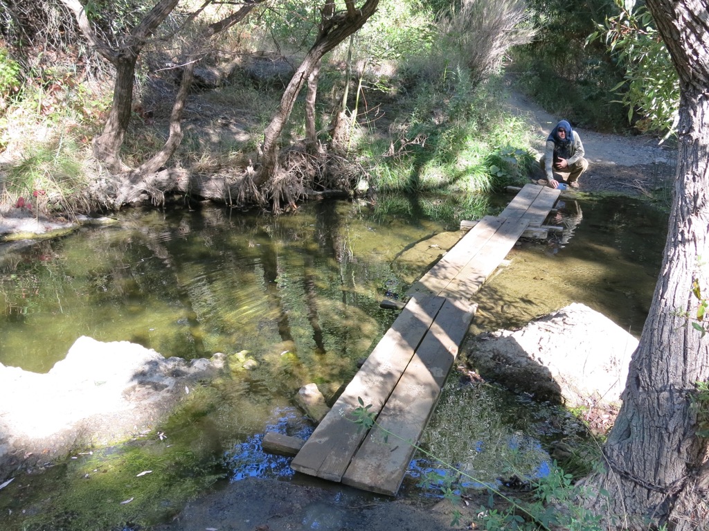 8 hikers met in a dirt parking area on the left (east) side of Hill Canyon Road in Santa Rosa Valley Park (10241 Hill Canyon Rd, Camarillo) on a clear chilly late-autumn morning. We began our hike into the Conejo Canyons Open Space just west of Wildwood Park by crossing 25-foot-wide Arroyo Conejo Creek via a nice bridge that provided excellent views of the year-round creek which always has flowing water. We then hiked along the Hill Canyon dirt road; it followed the creek upstream to a trail intersection that we’ve named “Five Points” where we took a short nameless spur trail down to the creek where we looked at the surroundings (there were no ducks this time)…