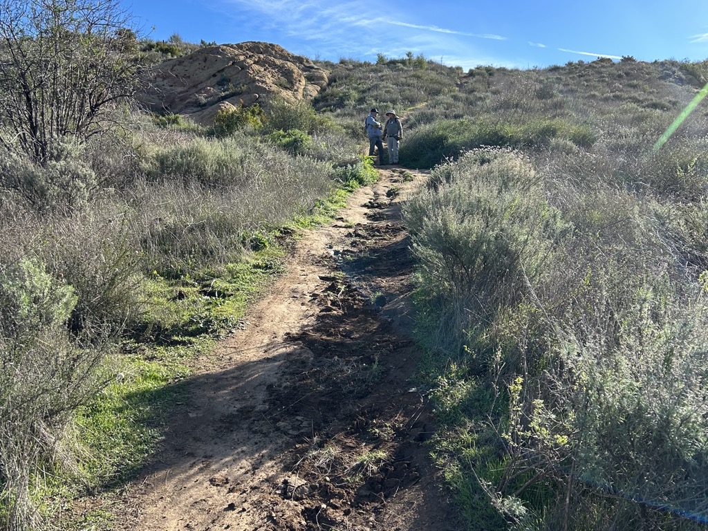 There were six volunteers participating in the February work party, at the Hummingbird Creek Trail. It was a very productive morning, filling in ruts, clearing and creating water bars (drain dips). One volunteer used a Weed Wacker and loppers to clear overgrowth from the trail and he cut down a bunch of Arundo. It was a perfect day for working on the trail. The weather and the ground conditions couldn’t have been better. Appreciations go to Paul Friedeborn, Geneen Garcia, Monty Gonzales, Mason Gonzales, Mike Kuhn, and Martin DeGoey.