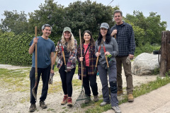 Eleven volunteers met at the trailhead for the Lower Chumash Trail at the end of Flanagan Drive in Simi. Once again, the morning was cool and overcast. After reviewing the safety guidelines and picking out our tools, one volunteer choosing a power string trimmer (weed whacker) and one volunteer choosing a gas powered hedge trimmer, we began going uphill. The person with the hedge trimmer went up first, hedging brush on both sides of the trail defining a standard width of about 4 ft. The group went up next using shovels, pick mattocks, loppers and a McLeod. They cleared mustard, California sagebrush, deerweed, and star-thistle. Then the volunteer with the string trimmer (weed whacker) came up next, clearing grasses and smaller plant growth. A couple of late volunteers came up from behind and cleaned the trail with leaf rakes. We made it up to the 1/2 mile mark just before it was time to head back. There is a bench there where we rested a bit, rehydrated and chatted. Going back down was very gratifying when we remembered how overgrown the trail was after the winter rains. Thank you so much; Heidi Kwok, Jake Stewart, Andres Rieder, Curtis Bedford, Parker Bedford, Paul Friedeborn, Mike Kuhn, Stephanie Kennedy, Tamera McIntyre, John McIntyre and Martin DeGoey for an incredible job.