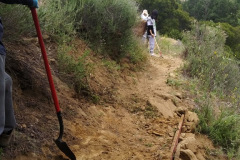 Five volunteers met at the western end of Washburn Street at the Mt. McCoy trailhead. With the courtesy of Rancho Simi Recreation and Parks District we were allowed to carpool and park at the top of the trail near the cross. Starting at the beginning of the designated trail, using Shovels and pick mattocks, we started by removing buried stones that were tripping hazards. Along with the stones we removed and other large rocks, we were able to widen the trail and shore up the edges. The volunteers did a fantastic job of defining and leveling out the trail, using stones and dirt. It was a wonderful morning, the weather was perfect and we had a great time, thanks to Arron Wieting, Bob Wieting, Stephanie Kennedy, Mike Kuhn and Martin DeGoey.