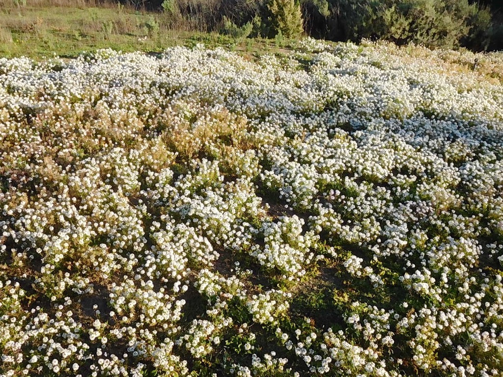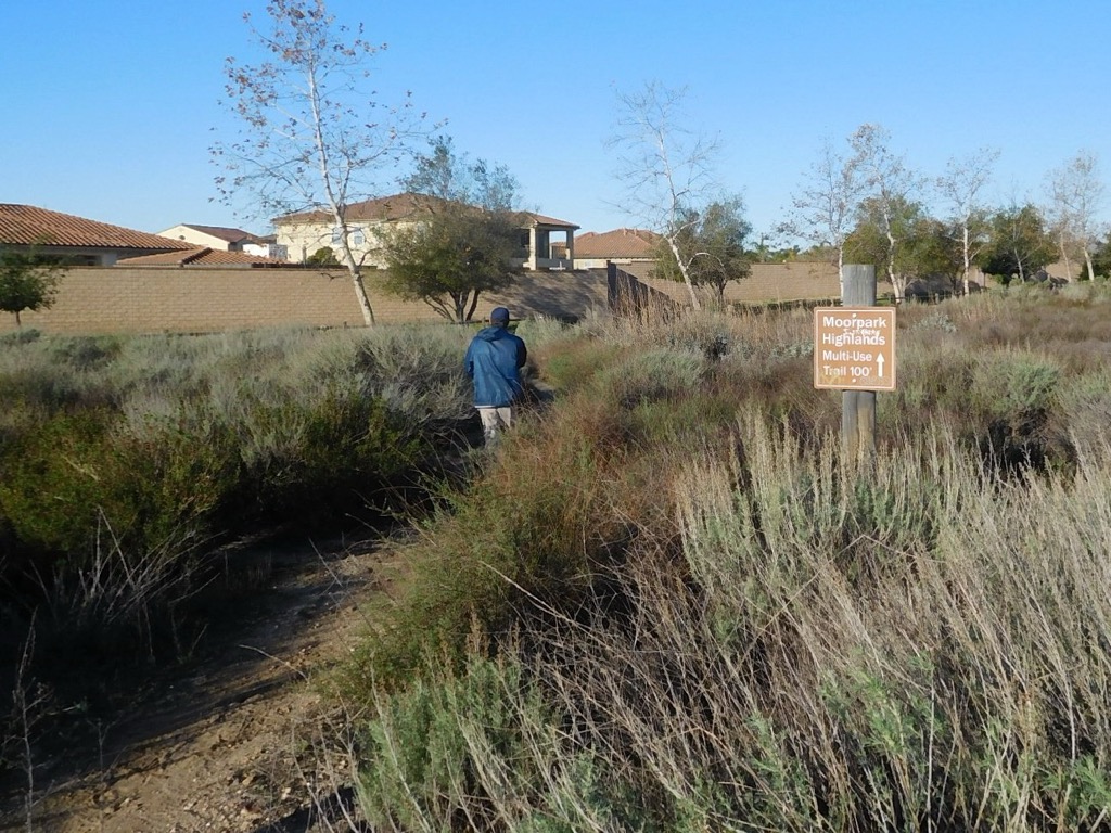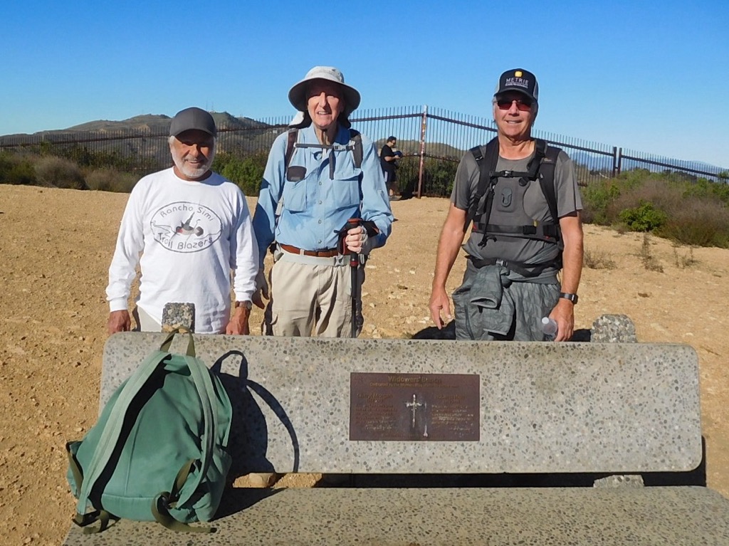8 hikers met at 8:00 AM along College Heights Drive in Moorpark, CA not far from the 6786 residence on a chilly late autumn morning. We headed west along a well-maintained trail passing Moorpark Highlands Park. After crossing Ridgecrest Drive we began gaining elevation as we climbed up to a ridge that afforded us expansive views of Happy Camp and northern Moorpark. The morning soon warmed to a pleasant temperature for the remainder of the hike and there was a pretty blue sky dotted with white clouds; we enjoyed nice views of the surrounding area. The trail continued along the perimeter of a gated residential area which we followed until we reached an intersection with a steep single-track trail that led up to an overlook with a covered bench. Next we followed a rapidly descending trail back to Ridgecrest Drive and then back to the original trailhead via Moorpark Highlands Park. 7 of the hikers chose to extend the hike by following a trail that led them to an overlook of downtown Moorpark before finishing a 4.7-mile hike with 597’ of elevation gain/loss. We then returned to the trailhead as we finished another nice hike. Note: despite it being only a couple of weeks before the official start of winter, we saw some sunflowers blooming.