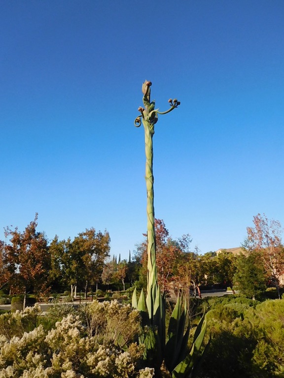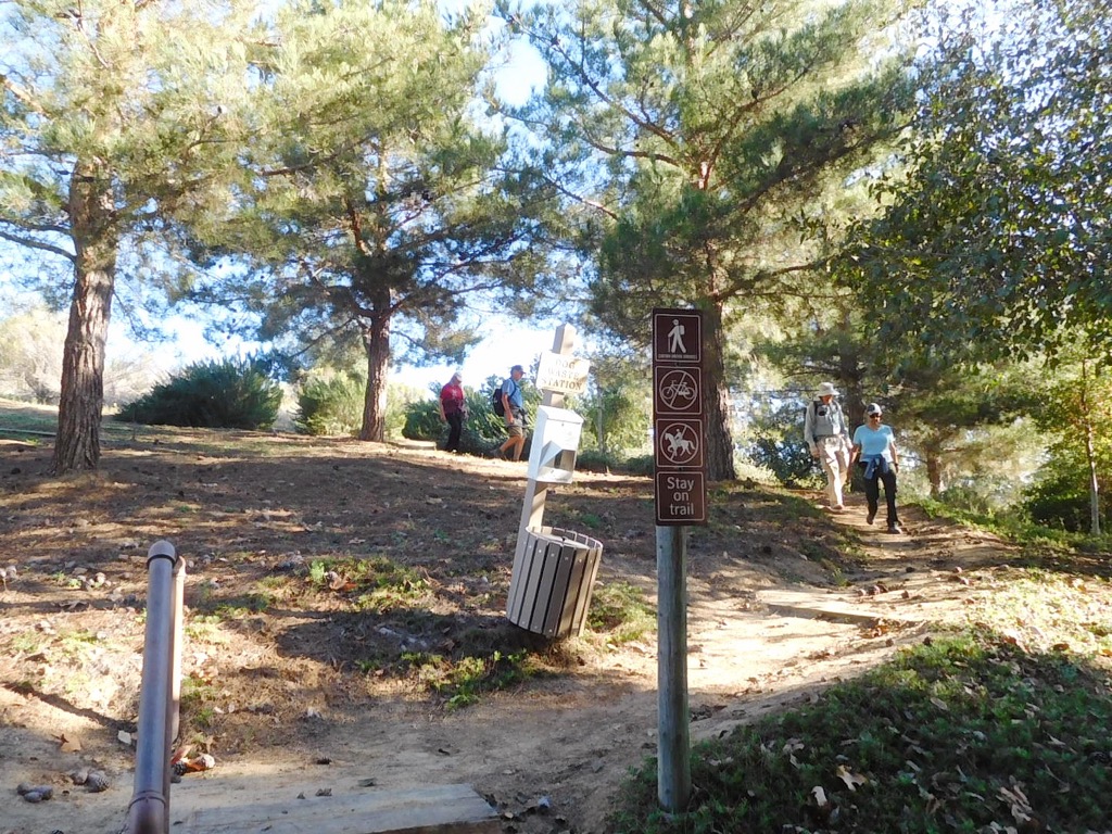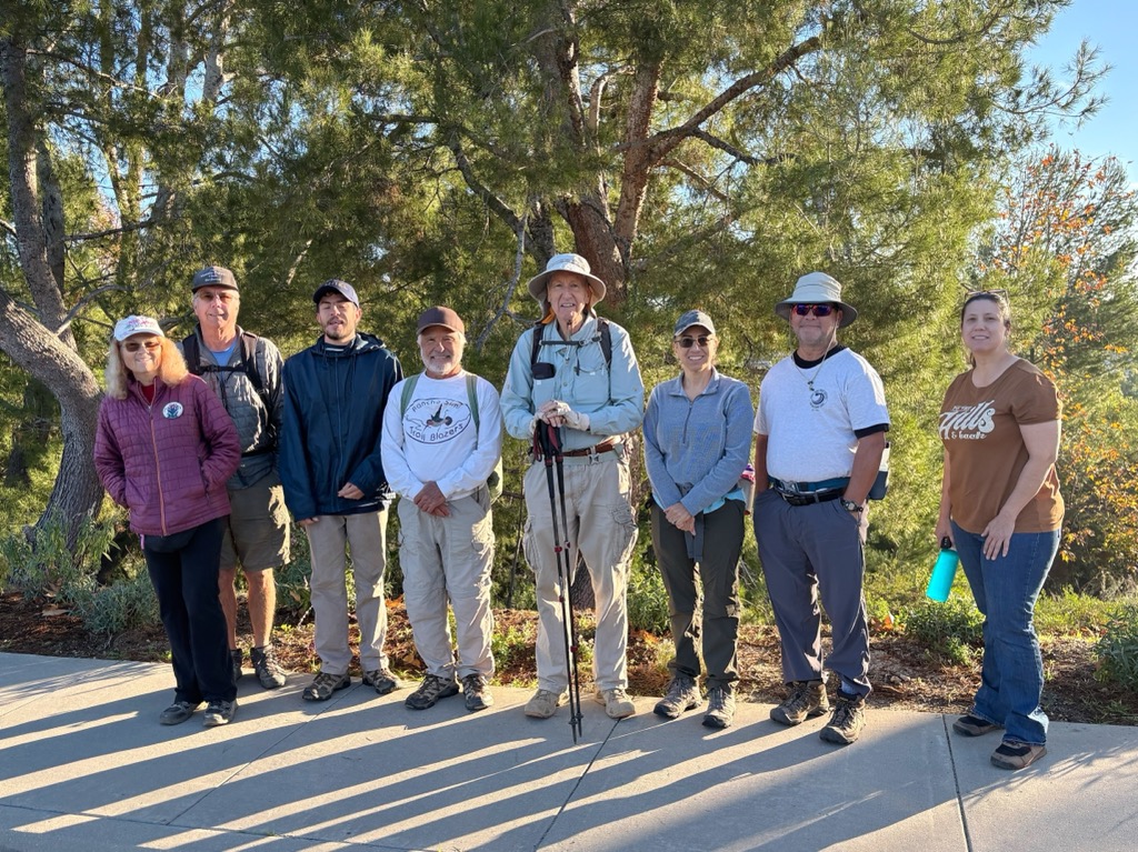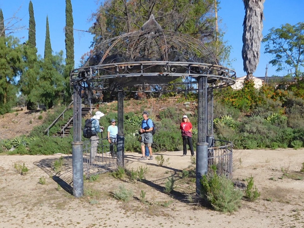 12 hikers met at the Conejo Community Park parking lot off of Jeaunine Dr. Hiking north we crossed Gainsborough Rd. leading us to the trailhead to Dawn Peak (Tarantula Hill). A steep paved road took us 275ft. elev. change and 1.0 miles round trip. The surrounding views of Conejo Valley were amazing. Coming back to the parking lot, where we started, we continued a hundred feet or so and took a right at the entrance of Conejo Valley Botanic Garden. There were several paths to take, all going different directions featuring; Specialty Gardens and Trail of Trees, Rare Fruit Orchard and Hilltop Desert Garden and Nursery Garden. We went up and down and back and forth, on the well-maintained paths, enjoying all the interesting trees, bushes, cacti and succulents with the occasional bird hoping or flying by. Stopping at the top of the Garden for a short break we continued on taking the Nature Trail.