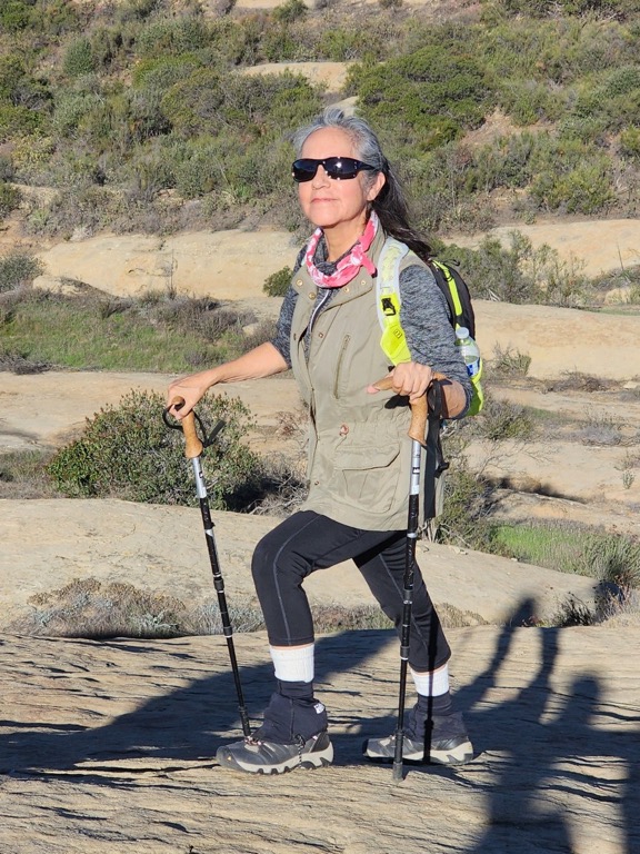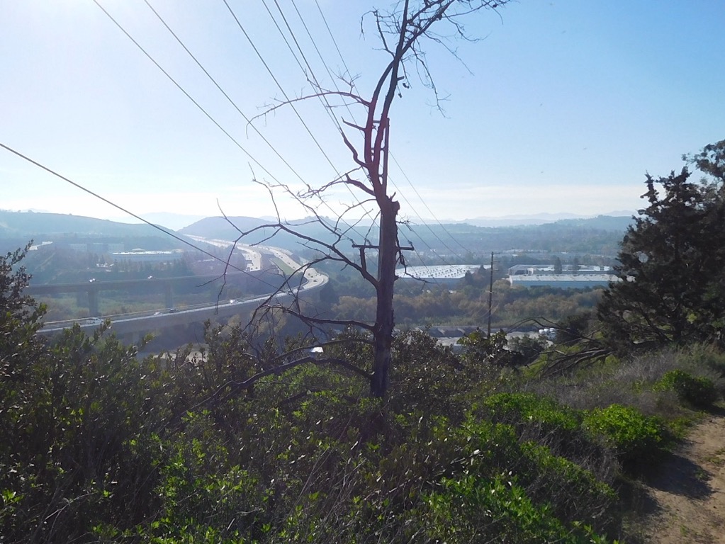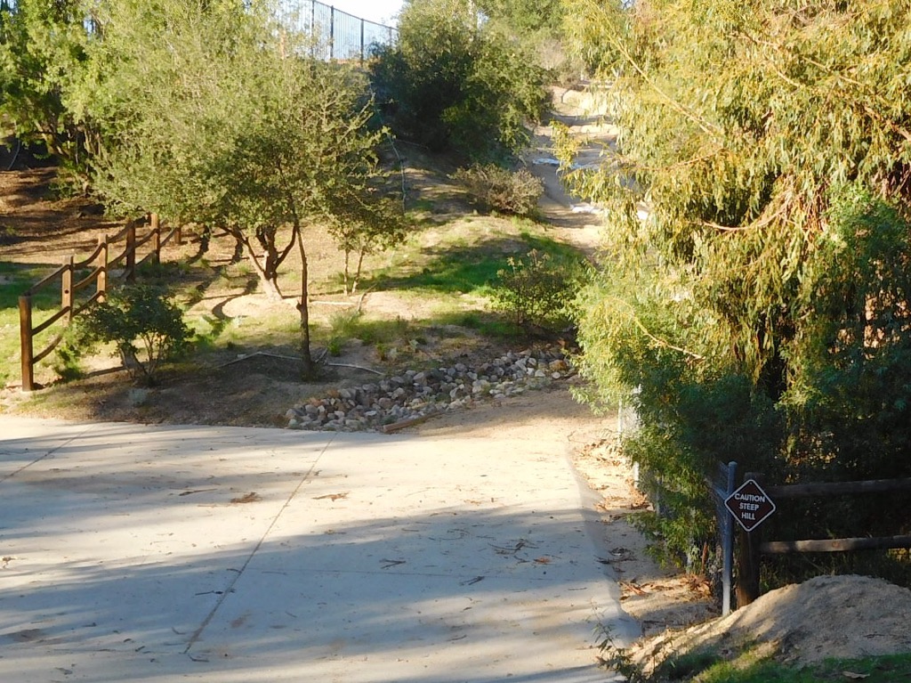 Eleven hikers met near the waterfall on Big Sky Place on a chilly winter morning. We walked northward along the sidewalk on Erringer Road until we reached the signed trailhead where we turned right (east) onto the Big Sky Trail. Soon we crossed a dry stream bed [a result of almost no rain since last spring] and a short distance later we turned left (north) onto the loop portion of the trail. As we hiked northward we enjoyed the fresh air and conversation with our fellow hikers. The trail followed the now-dry stream bed with several stretches of shade trees and three street crossings before it began undulating toward its northernmost point.