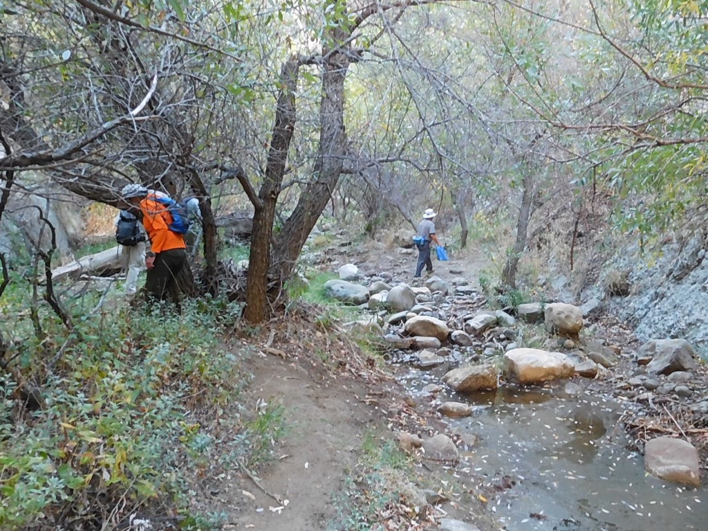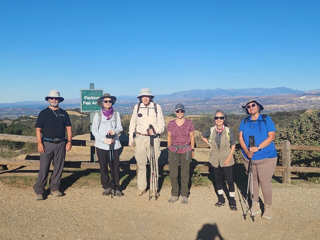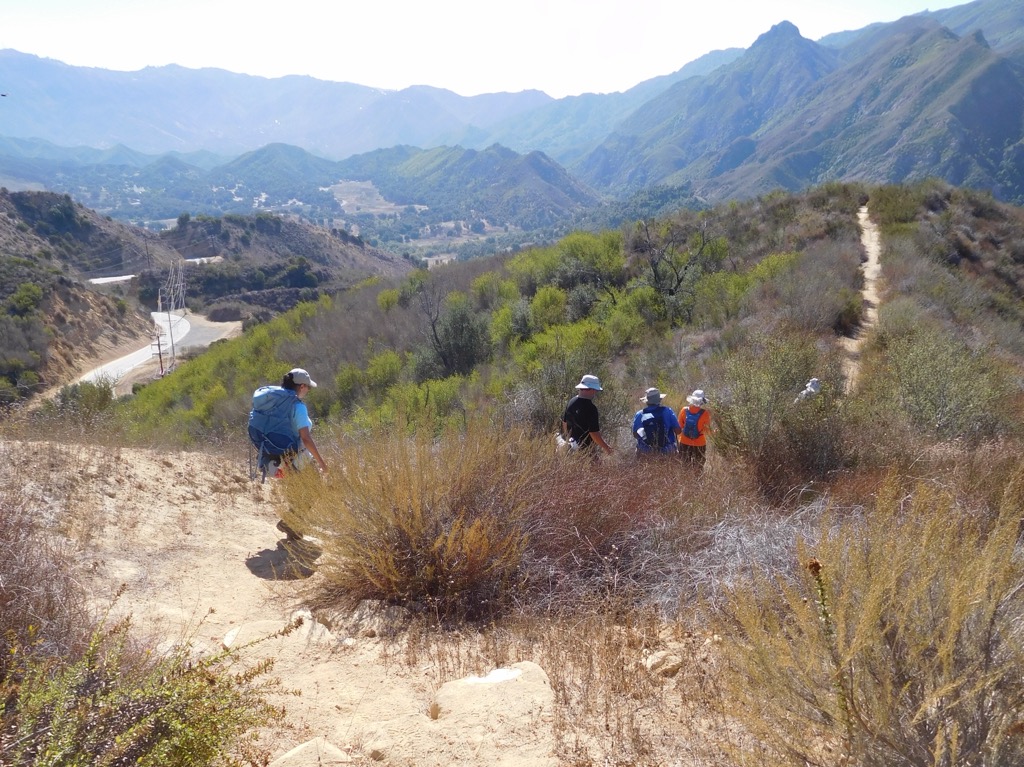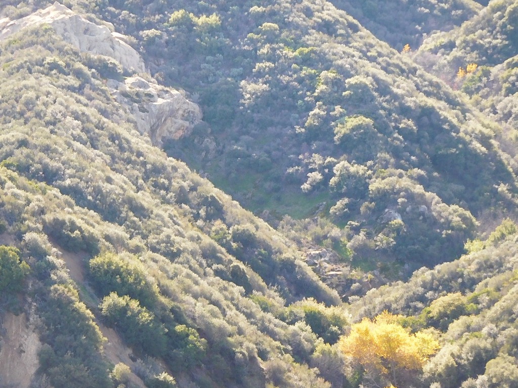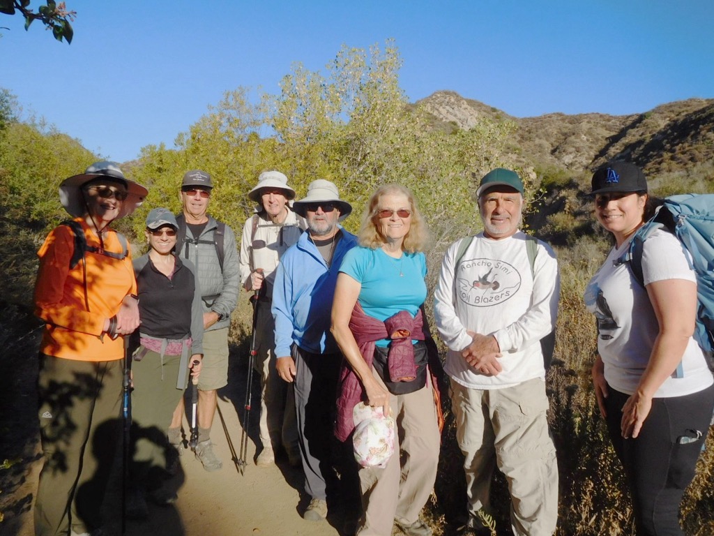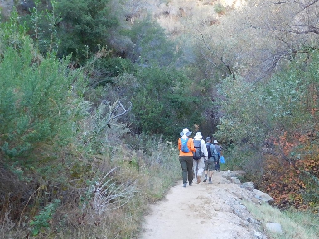8 hikers met at the “Ed Davis Park at Towsley Canyon” section of the 4,000-acre Santa Clarita Woodlands Park on a slightly chilly autumn morning. We began hiking along a dirt road toward the Sonia Thompson Nature Center, crossing Towsley Creek on a concrete bridge. Soon we began a counterclockwise hike on the Towsley View Loop Trail. After passing through The Narrows section of Towsley Gorge, the trail began rising via switchbacks along the shaded eastern slope of the canyon. The verdant north-facing slopes of the Santa Susana Mountains rose steeply to the south. The single-track trail passed through sage scrub, stands of California walnut and bay laurel trees, and scattered oak trees as we made our way to the 2,450’ high point on the trail from which much of the Santa Clarita Valley could be seen; the mountainsides were adorned by lots of green plant life. The trail then began dropping into shady Wiley Canyon which we followed downstream to a junction with the Canyon View Loop Trail (which we decided not to hike on this hike) and then on to the dirt road leading back to our vehicles. We returned home having completed a pleasant 5.23-mile hike with 1,107 of elevation gain/loss.