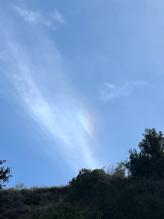 Six hikers met at the trailhead on Evening Sky Drive on cool spring morning. We’ve hiked Las Llajas Canyon to the shovel many times, but this hike was very different. All around the trailhead we noticed a good many signs about a lost dog. The dog was a white Jindo named Leia. One of our hikers noticed something white, looking very out-of-place, on a ridge about 100’ to the north. At this point, we were only about a half-mile up the canyon, not far past the turnoff leading into the old Marr Ranch development. Moments later, the put-of-place white object started moving and we knew it had to be the lost dog. After reporting the location on social media, we continued up the canyon, hoping the owner would be able to find their dog.