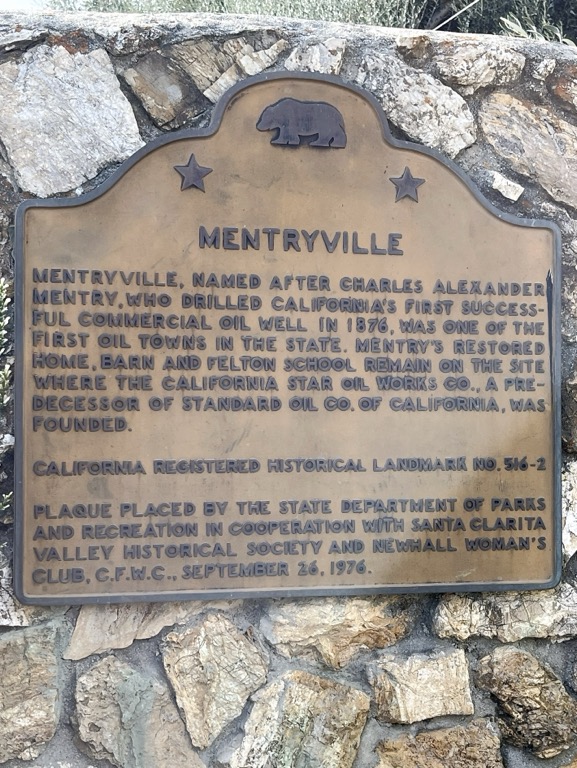 6 hikers met at 8:00 AM at a dirt parking area about 0.4 mile outside the entrance to Mentryville, located in Pico Canyon in the north end of Santa Clarita Woodlands Park (only a few miles from Towsley Canyon). Mentryville was an oil boom town in the 1880’s and was home to over 100 families until the early 1930’s. Pico Canyon was the site of the first commercially successful oil well (Pico No. 4) in the western United States. Several historic buildings are still standing in Mentryville including Charles Mentry’s grand 13-room mansion, a one-room schoolhouse, and a small barn.