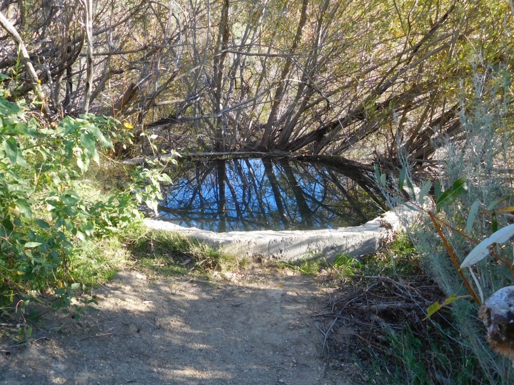 Eleven hikers met at 8:00 AM at historic Corriganville Park at the east end of Simi Valley on an extremely pleasant spring morning. We began our hike at the Interpretive trail trailhead on the far east end of the parking lot. Passing Camp Rotary, we started up the Loop Trail in the eastern section of the park by crossing the (dry) creek that flows through the park. After seeing some rock cairns and a maze, the trail gradually rose to the west where we Soon reached a 3-way trail junction. Taking the middle trail and following it in a counterclockwise direction, we descended into a large open space until reaching the primary trail on the south side of the park. Many of the old western movies were filmed here, having several signs showing pictures and brief descriptions of movie sets filmed decades ago. There were still parts of some of the movie sets but over the years mother nature has destroyed nearly everything that was left. We finished the Loop Trail by crossing a bridge at the west end of Robin Hood Lake where below, in the concrete dam structure, underwater portholes for filming underwater scenes are still visible.