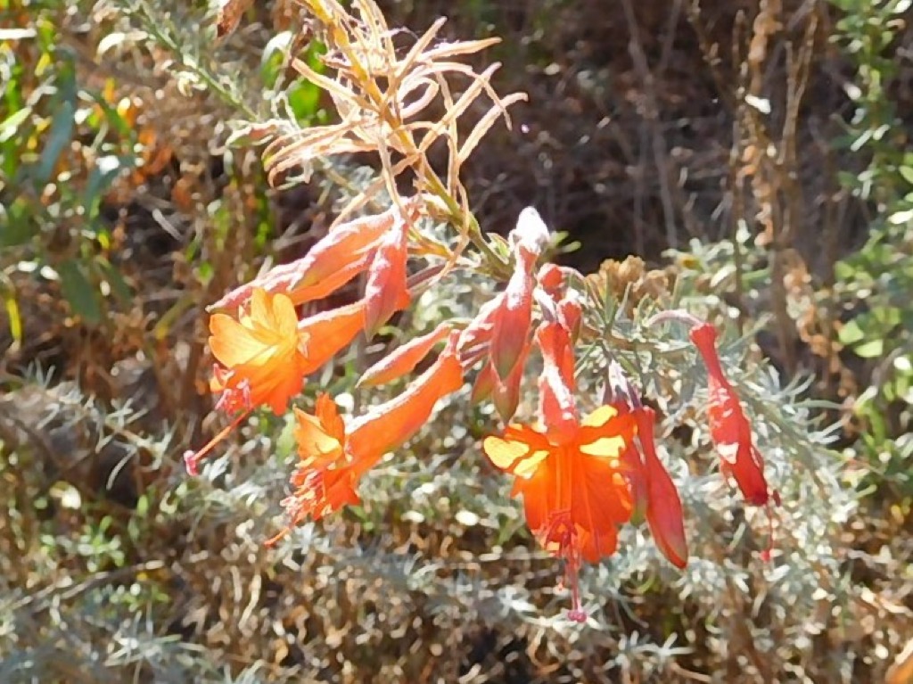 The Weather conditions Had been dry so there weren’t many wildflowers. We enjoyed some lupine and sunflower, wild cucumber, sugar bush and white-flowered currant. Nearing the top of the mountain, black muster was growing thick. A couple of domestic flowering trees we enjoyed were, a Bengal kino (orange) and an Australian golden wattle.