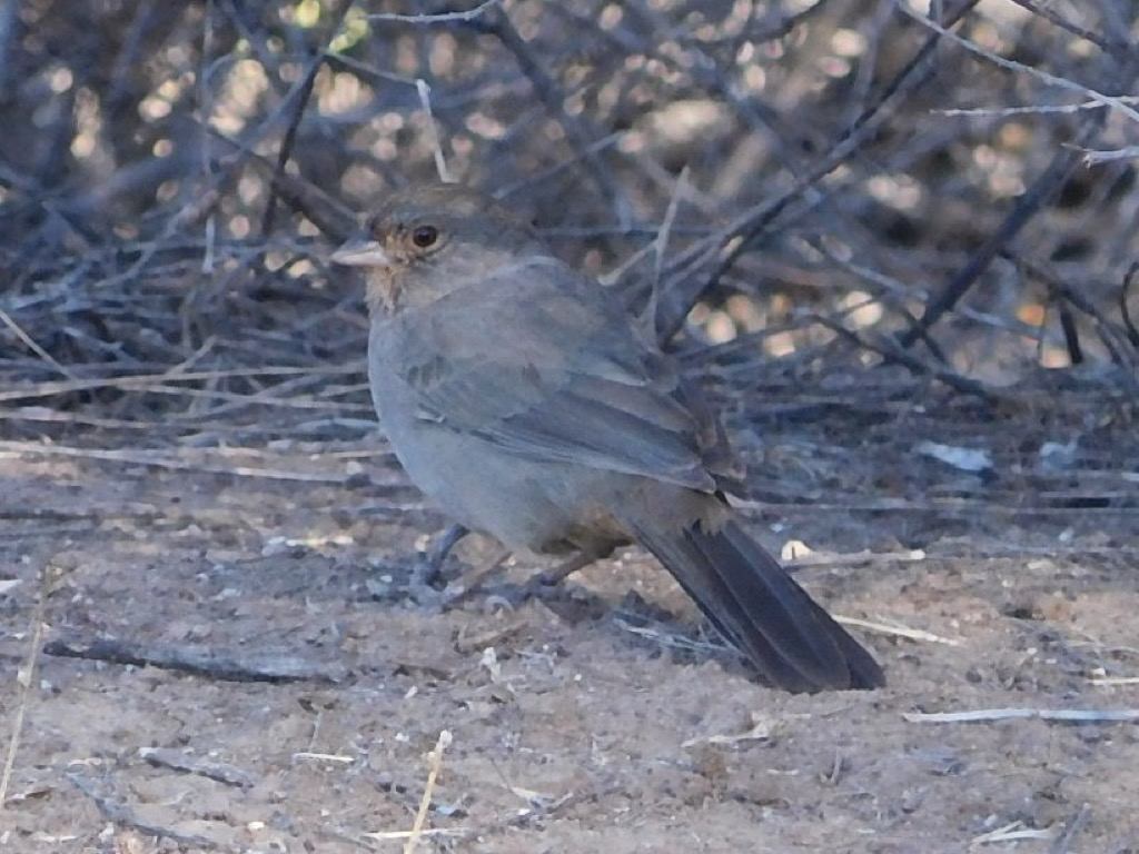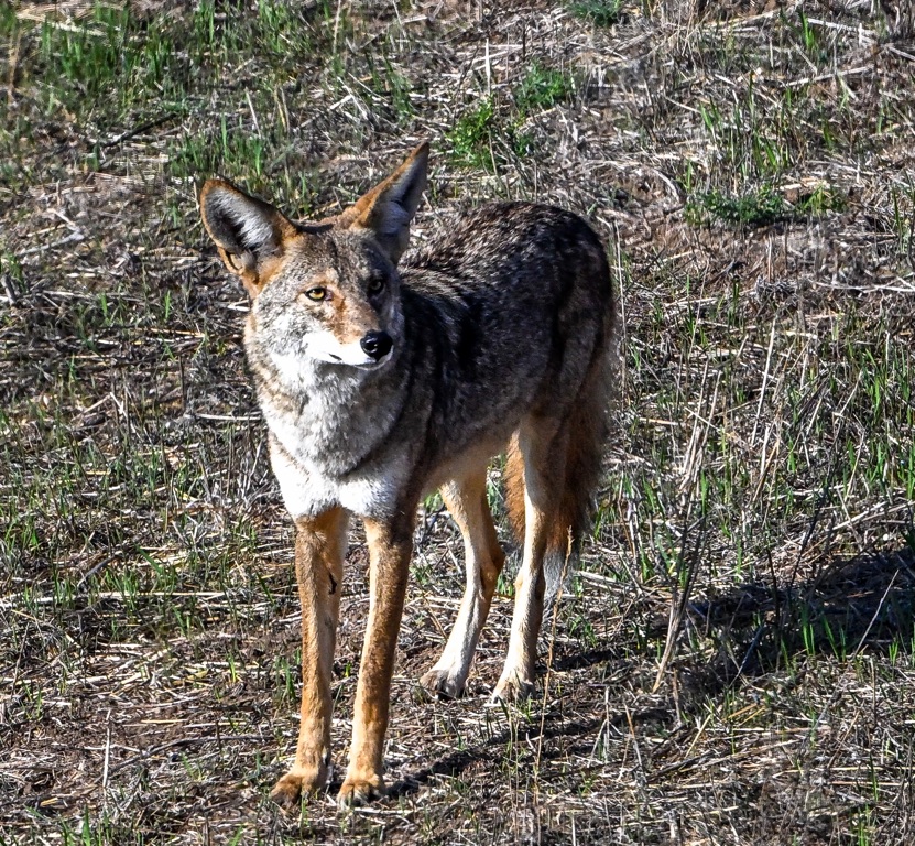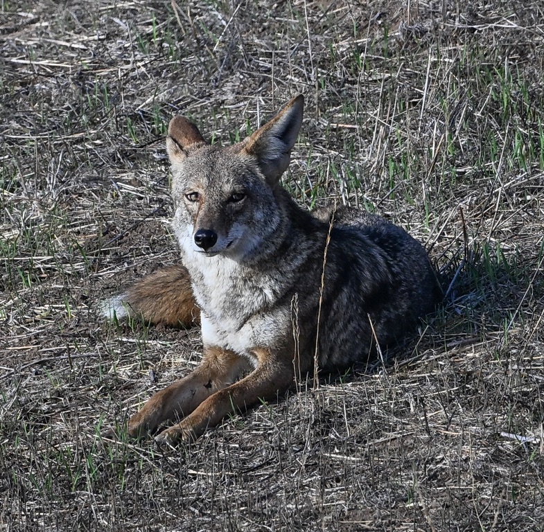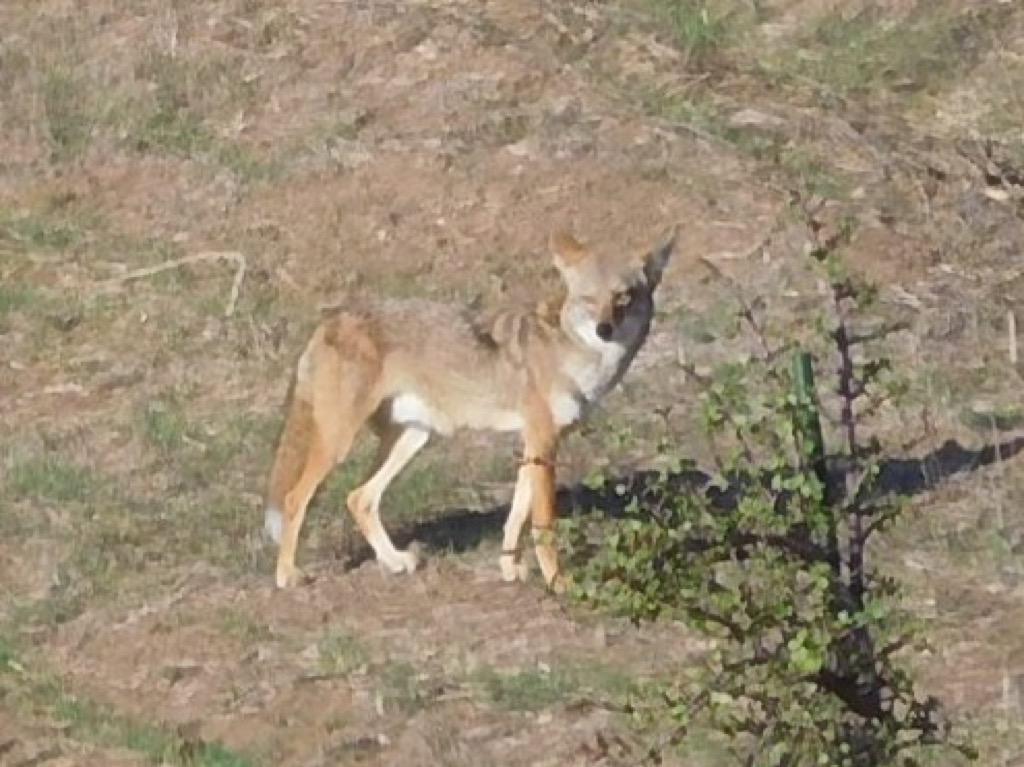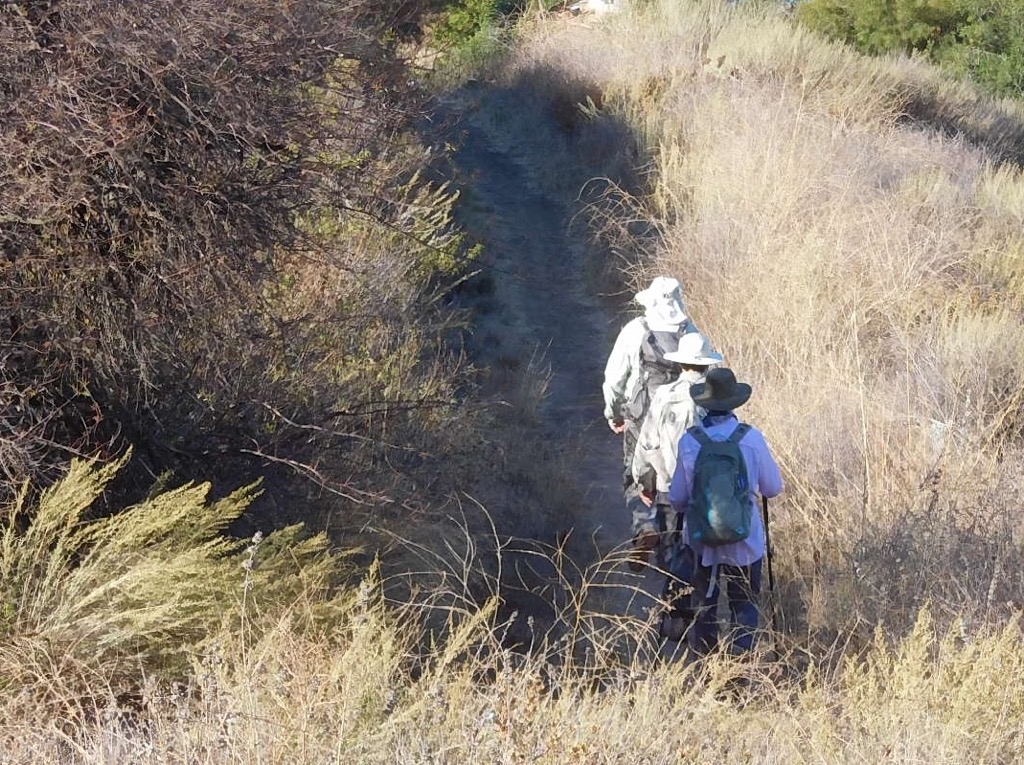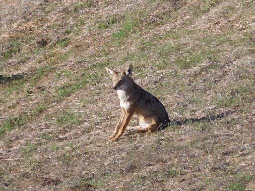 Seven hikers parked along Big Sky Place and met next to the empty waterfall at the entrance of the Big Sky neighborhood. The hike started north, on the sidewalk off Erringer Road on a slightly cloudy, overcast morning. The stream bed to the south was dry as we continued and went left at the trail junction for a counterclockwise loop. Reaching the summit of the first steep hill, the air was clear and the views were good. The hike continued on the north-south ridge east of the housing development. There we saw a lone coyote that didn’t seem to be bothered by us in the least. We enjoyed the views of the valley below and sections of different neighborhoods and surrounding hills, including Whiteface Mountain. At the highest point of our hike (1,463’) we could see the remnants of Lost Canyons Golf Course and where the CottonWood fire was from a few months ago. We were all enjoying the hike in friendly conversation as we made our way to the oak-lined streambed that runs through the Big Sky development. The hike was a pleasant 4.5-mile hike, with 875’ of elevation gain/loss.