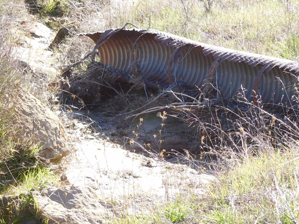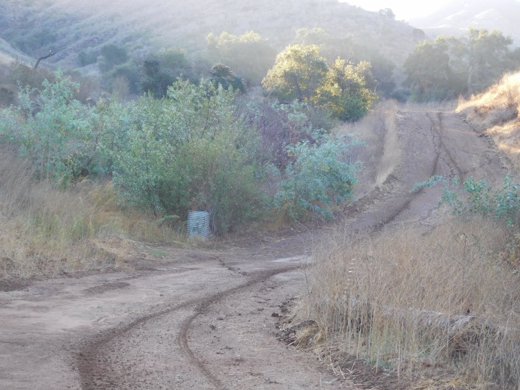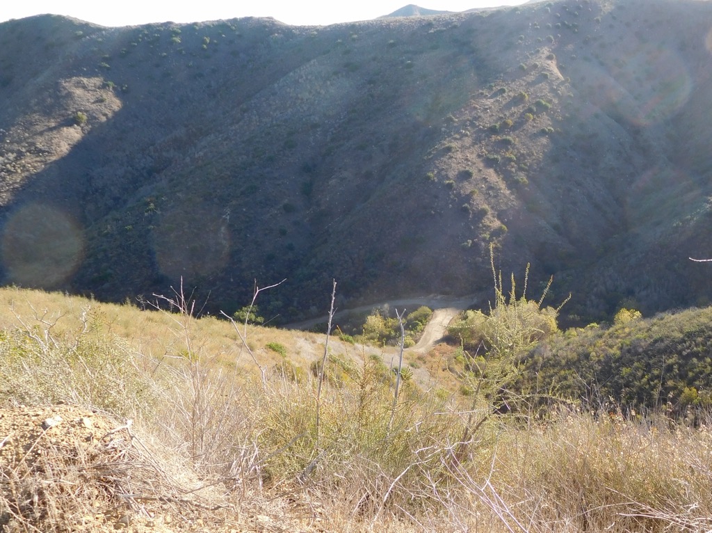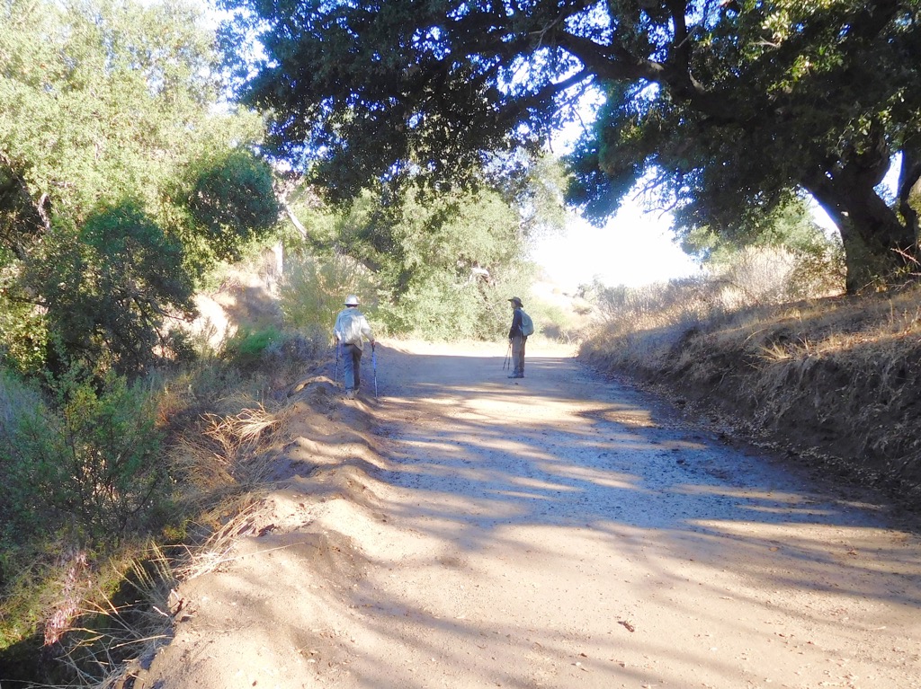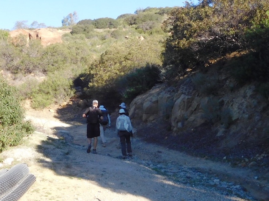 Four hikers met in a dirt parking area on the left (east) side of Hill Canyon Road in Santa Rosa Valley Park. The hike began in cool shade, crossing a 25-foot-wide bridge over the Conejo Creek, walking at a brisk pace until the sun creeped over the top of the mountains to the east. Hiking along the Hill Canyon dirt road for 0.8 miles to a junction going east, there is a nameless spur trail leading down to Conejo Creek for a great closeup view of the Creek. After looking at the creek, we then made our way a short distance up to “Five Points” where we continued southeast a short distance turning southwest (right) onto the Hawk Canyon Trail, a narrow trail leading through a dense riparian woodland. The shaded canyon trail runs along a seasonal feeder stream, presently nearly dry, to the Western Plateau dirt Road. Turning east (right) the road steadily rose to Conejo Center Drive, passed the impressive Thousand Oaks Municipal Service Center, and we made our way onto the Hill Canyon Fire Road (normally gated).