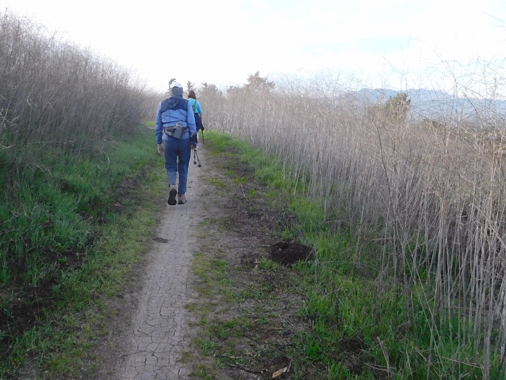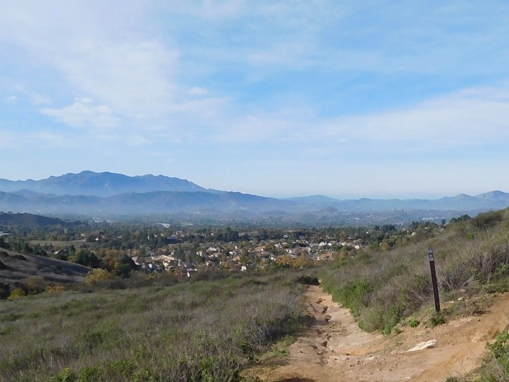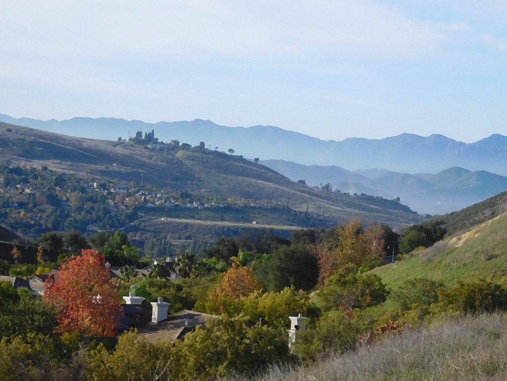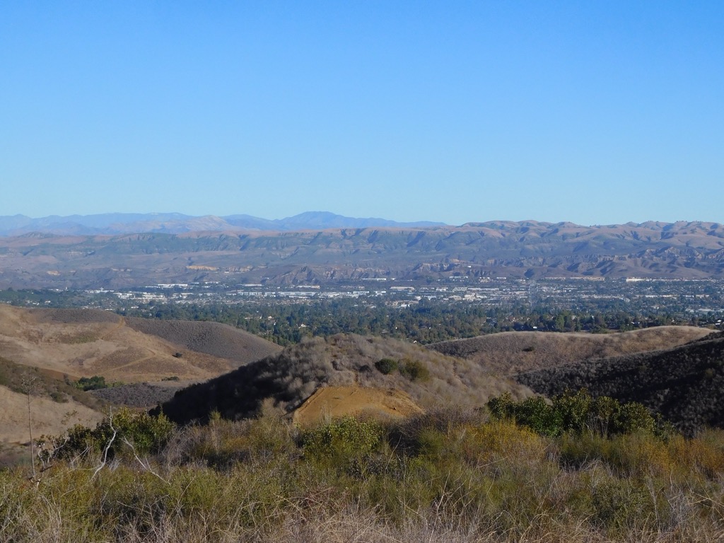 Four hikers met in the parking lot of Challenger Park in Simi Valley on a chilly autumn morning. Once we crested the first hill on the Challenger Park Trail, we warmed up nicely. After seeing a lot of deer tracks in the soft, heavily moistened trail, from the rain the previous day, we were relieved when the trail turned to hardened sand and stone. Turning south on the Montgomery Trail (dirt road), that was kind of muddy at first but as the trail steepened and rose higher, the trail dried out and the views became breathtaking. We had great views of Simi Valley and could see Bard Lake in the distance.