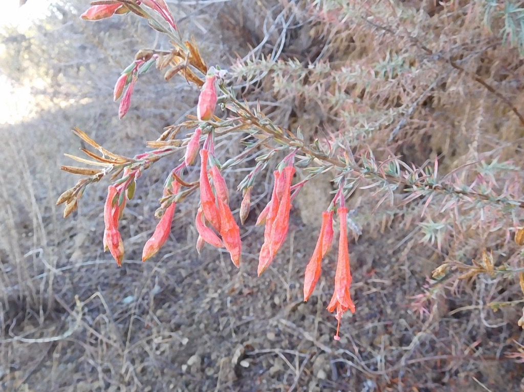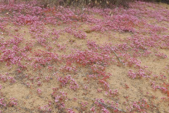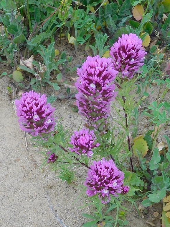 6 hikers met at the Rincon Beach County Park parking lot after carpooling from the Donut Delite in Simi Valley, on a gorgeous sunny morning. Our hike began by hiking the trail leading to Rincon Bluffs Preserve, with a great view of a blurry beach below breaking through the morning haze. Crossing the railroad tracks to an unmarked trail, going up for a few hundred feet and continuing west in the Rincon Bluffs Preserve, there were some belladonna lilies, verbena, tarweed and fennel among the dry shrubbery. The trail turned into a well maintained, irrigated walking path behind an industrial complex, complete with scenic lookouts. The walking path ended at a baseball field, with restrooms, where the Carpinteria Bluffs Trail connects.