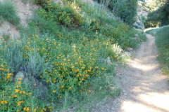 Eight hikers met at the Baseball Field Parking Lot, at the junction of Avenida de Los Arboles and Canna Street in Thousand Oaks. The hike began by crossing under Avenida de Los Arboles through a tunnel and walking through Wildwood Neighborhood Park. We then climbed some stairs and crossed Arroyo Conejo on a bridge; next we headed through a neighborhood to the Las Flores Trail which we followed to Lynn Road. Then we connected to the Lynnmere Trail, which we followed west to the Wildwood Canyon Trail. Crossed the Arroyo Conejo again and followed the trail eastward back to the Neighborhood Park.