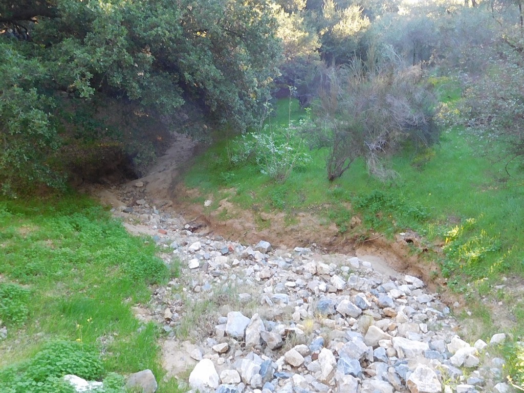 Nine hikers gathered at corner of Ish Dr. and Tapo St. near the Arroyo Simi Greenway. We walked south on Tapo Street a short distance, crossed a bridge over the Arroyo Simi. and continued south along Tapo Street until it curved to the west and its name changed to Guardian Street, then soon passed by the impressive relatively new Rancho Simi Recreation and Park District Activity Center. We continued westward through a surprisingly pleasant wooded “industrial” area where we could see cows grazing to the south in the Brandeis-Bardin Campus of American. We continued on to Tapo Canyon Road where we turned north until we passed over its bridge over the Arroyo Simi.