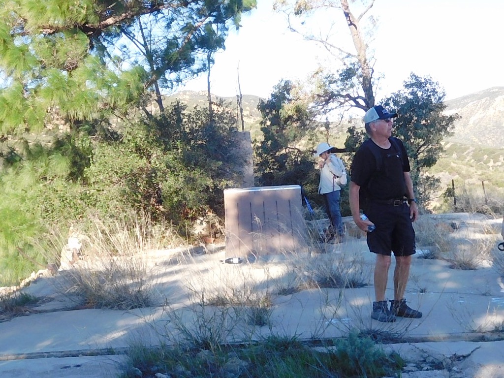 Three hikers met at 7:30 AM at the starting point of our hike on Poema Place in Chatsworth on a cool morning. We began our hike by descending into the heavily shaded bottom of Devil Canyon where we followed the remnants of the Devil Canyon Motorway upstream as it frequently crisscrossed the dry streambed. After hiking 1.2 miles we came to a junction where an unmarked trail ascended, rather steeply to the west. The trail level out, connecting to the Santa Susana Pass Trail. After a short distance the trail ended at a paved road that eventually reached the beginning of the unpaved Johnson Motorway (once a toll road). The trail (an old dirt and sandstone roadbed) rose westward until it met a short “driveway” leading north to the ruins of the ranch house that was built by Ann and Neils Johnson who were the first English-speaking homesteaders in the San Fernando Valley; they had built their primary home in “Chatsworth Park” in the 1870’s.