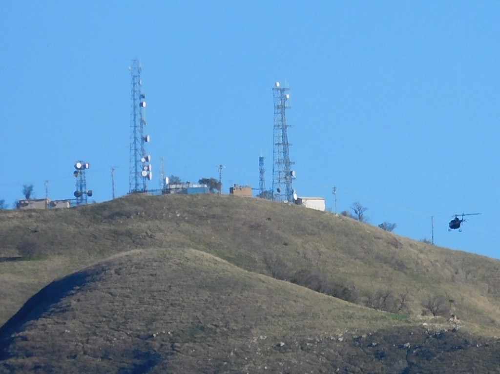 9 hikers met at the trailhead on Evening Sky Drive on a pleasant morning with high overcast clouds. We began our hike by descending a short-paved section of road into the canyon bottom; from there we followed the wide well-graded dirt road upstream 1.8 miles to the north, crossing the dry stream bed three times. We then followed a “use” trail (the remnants of an old mining road) as we climbed up the eastern slope of the mountain, atop which we enjoyed panoramic views of the surrounding area including parts of Chivo Canyon, Las Llajas Canyon, and the Santa Susana Mountains.