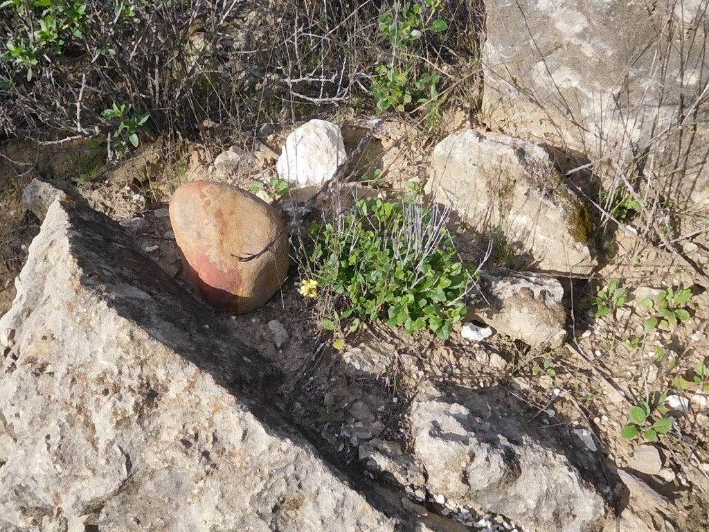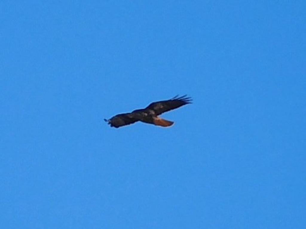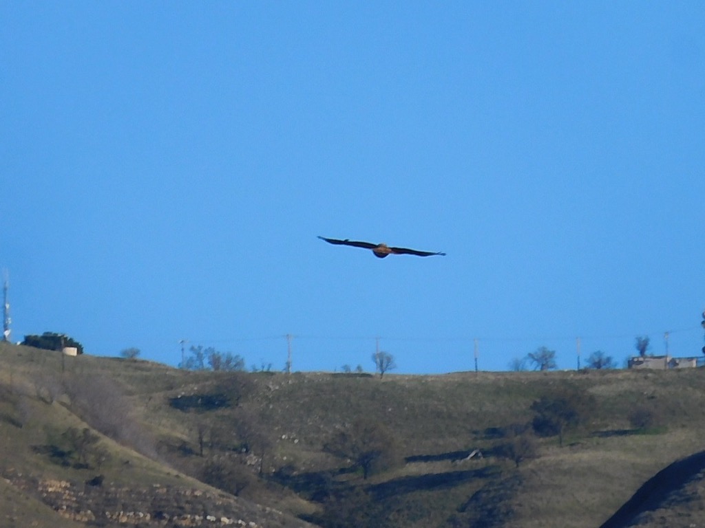 We took a break when we reached our goal, the site of a coquina (a soft whitish limestone formed of broken shells and corals cemented together and used for road building) mining operation. Various mining equipment artifacts are strewn about near the mining site, most notably a P&H Model 206 shovel. We encountered no other hikers during the first half of our hike (the uphill part) but we saw some bicycle riders and a few hikers during the return part of the hike. The vegetation on the hillsides was dry, though there was some grass starting to grow. We spotted a red-tailed hawk perched in the distance and of course quite a few unidentified birds here and there. We returned to our vehicles having completed a pleasant 6.23-mile hike with about 1,073’ of elevation gain/loss.