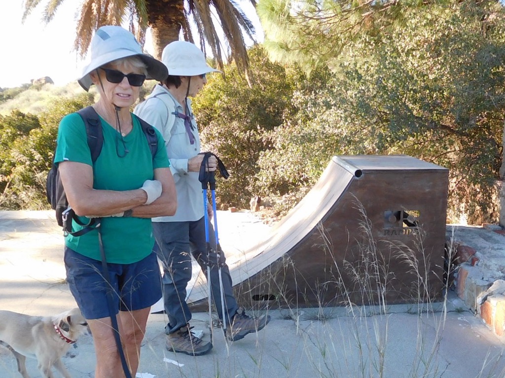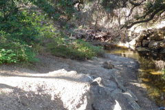 9 hikers met in a dirt parking area on the left (east) side of Hill Canyon Road in Santa Rosa Valley Park. The hike began by crossing a 25-foot-wide bridge over the Conejo Creek, on a typical summer morning. Then South from there, hiking along the Hill Canyon dirt road for 0.8 miles to a junction going east, there is a nameless spur trail leading down to Conejo Creek for a great closeup view of the Creek. After looking at the creek, we then made our way a short distance up to “Five Points” where we continued southeast a short distance turning southwest (right) to the Conejo Canyons Bridge near the Hill Canyon Treatment Plant Wetlands. We walked along the Hill Canyon Fire Rd. a short distance until we reach Lizard Rock Trail and follow it alongside the treatment plant fence 0.3 miles reaching Arroyo Conejo Trail. Then continuing on to Paradise Falls, the shady trail alongside Arroyo Conejo was quite the treat for a summer hike. We returned the way we came, grateful for a pleasant 5.7-mile hike, with 395’ of elevation gain/loss.
