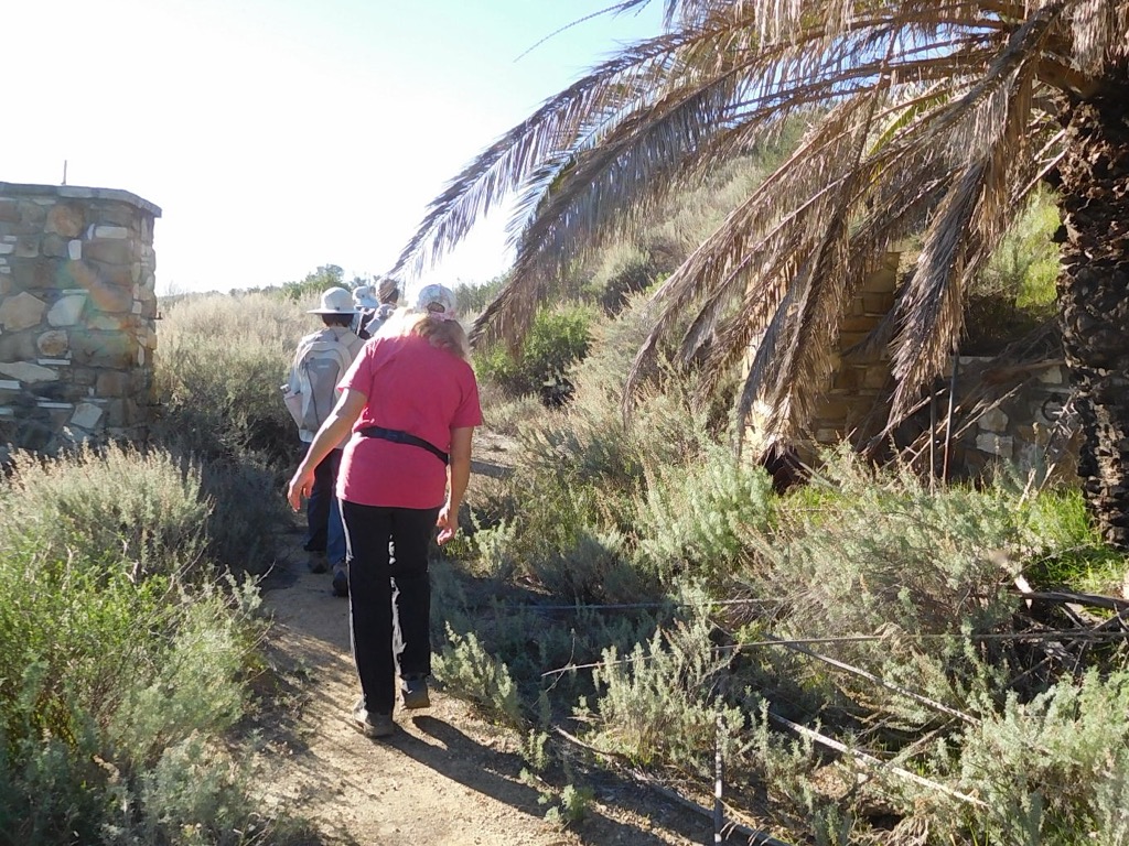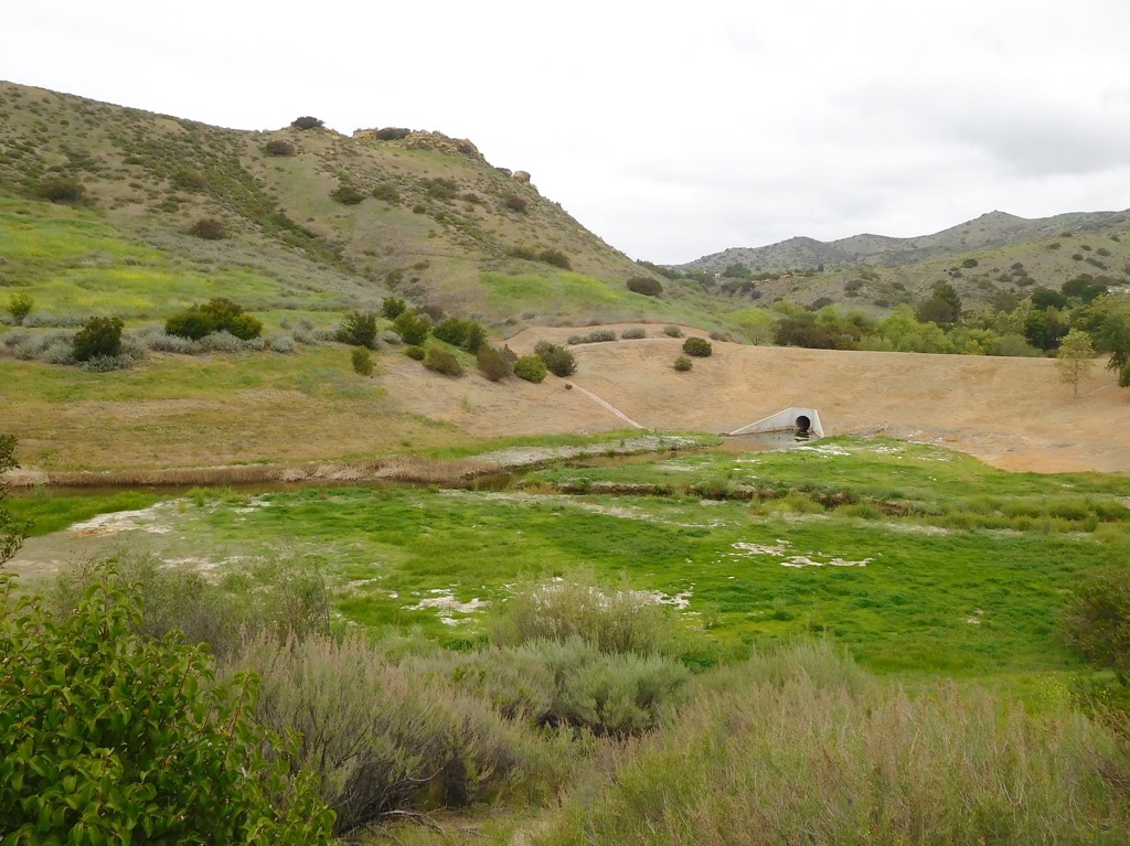 Six hikers met at 7:30 AM at Sapwi Trails Community Park off of Erbes road in Thousand Oaks, where the hike began. From The children’s play area, we went north east on an open space service road, over a bridge that crossed a small creek. The road was surrounded with trees, lush green grass, flowers and rabbits and birds. As we continued hiking east, we passed a flood control dam adjacent to the Sapwi Trails Disc Golf Course. The trail then followed the flood control basin, eventually emerging onto Westlake Blvd. There we crossed the street and followed Lang Ranch Pkwy, through Lang Ranch Neighborhood Park, then to the end where Albertsons Fire Road starts. We followed the Fire Road for about a half mile to a trail that drops down leading through the Chumash Indian village and Museum.