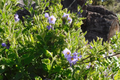 The overcast sky and cool temperature provided us with an enjoyable hike, seeing trees and plants and flowers, such as; purple nightshade, wishbone bush, various lupin, western wallflower, fiddleneck, yerba santa, sticky monkeyflower and a southern umbrellawort.