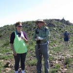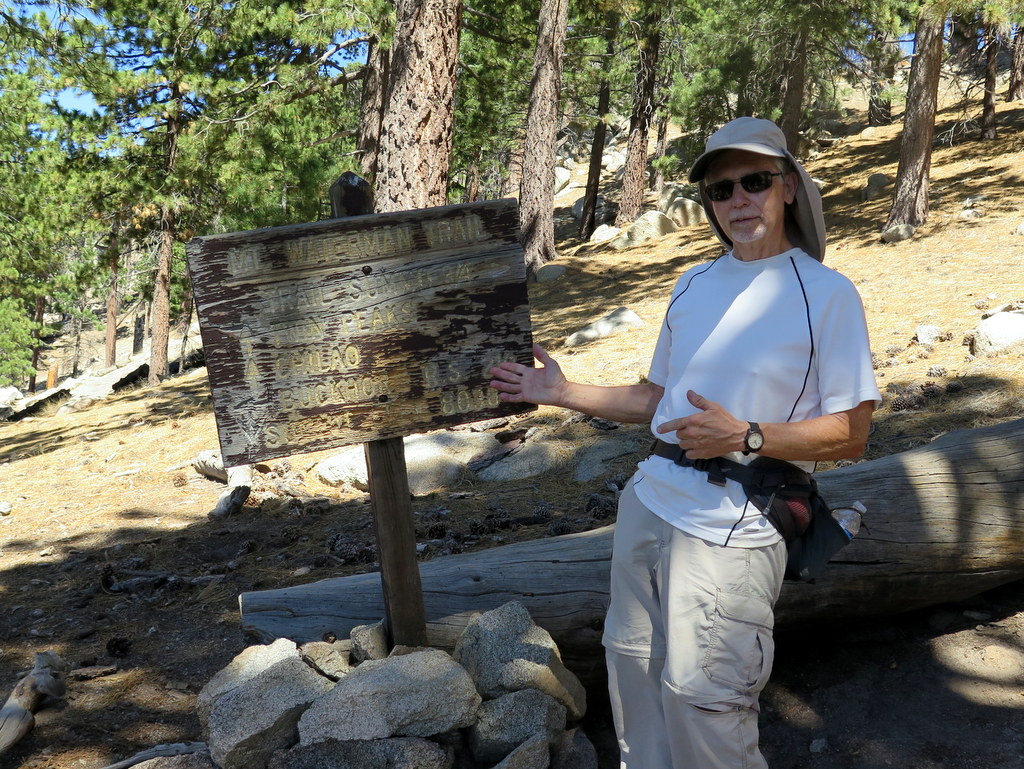 Six hikers carpooled to the Mt. Baldy (Mt. San Antonio) Ski Lift parking lot (6,447′) at the north end of Mt. Baldy Road on a pleasant summer morning to hike to Mt. Baldy peak (10,064′), the highest peak in the San Gabriel Mountains. After riding the lower ski lift up to Baldy Notch (7,802′), we set out on the 3.6-mile climb to the peak. Initially the trail followed a fire road/ski run heading up the mountain to the west for about 1.25 miles, eventually leading to the well-named Devil’s Backbone portion of the trail.